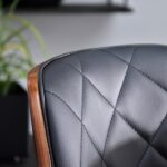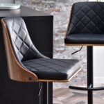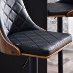 Elegantna barska stolica tapecirana udobnom eko kožom ukrašenom prošivima zbog kojih odiše elegancijom te tako pristaje i u otmjene interijere.
