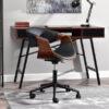 Uredska stolica izrađena od prekrasnog i kvalitetnog drveta u kombinaciji s eko kožom ugodnom na dodir. Pristajati će savršeno u moderne urede, a svojim iznimnim dizajnom može se lako uklopiti i u radni kutak Vašeg dnevnog boravka.