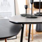 Drveni stolić izrađen u kombinaciji s metalnim postoljem koji dolazi u dvije dimenzije i pet različitih boja te ga je stoga moguće kombinirati ili koristiti pojedinačno.