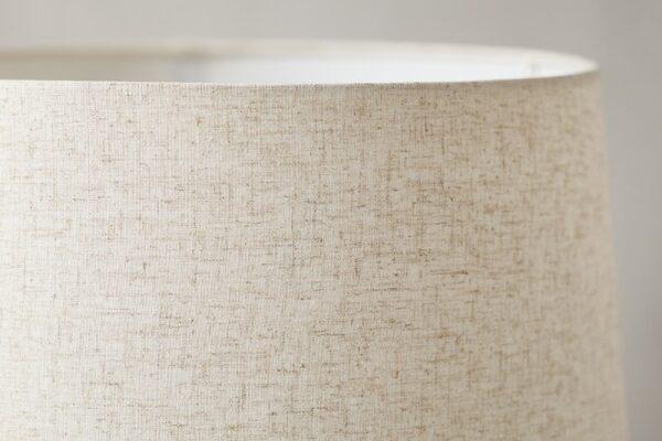 Podna svjetiljka izrađena je od prirodnih materijala poput abake, jute i lana. Njezina elegantna struktura očituje se dimenzijama koje joj pružaju suptilan, ali snažan izgled. Svestrana je s obzirom na rasvjetne mogućnosti, nudeći prostoru toplu atmosferu bez suvišnog sjaja.