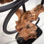 Podna svjetiljka Henning 147 izrađena je od masivnog drva bagrema i metala, s prirodnom i crnom bojom. Njezin jedinstveni dizajn uključuje drveni ukras unutar kruga na postolju, dok je sjenilo od pamučnog platna. Osim toga, svaka svjetiljka je unikatna zbog ručnog rada i prirodnih materijala, što može rezultirati manjim varijacijama u boji, nepravilnostima ili dimenzijama.