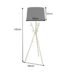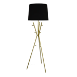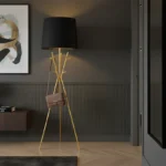 Podna svjetiljka Rami kombinira crno platneno sjenilo s elegantnim zlatnim stalkom za profinjen izgled. Izrađena s izdržljivim metalnim okvirom i visokokvalitetnim tekstilnim sjenilom, dodaje praktično osvjetljenje i vizualni karakter suvremenim životnim i garderobnim prostorima.