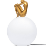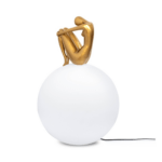 Podna svjetiljka Uomo pravo je umjetničko djelo koje se ističe svojim originalnim i stiliziranim dizajnom. Veliko okruglo sjenilo izrađeno je od polipropilena, a jedinstvenost svjetiljke naglašava prekrasna sjedeća figura od smole. Ova senzualna svjetiljka pravi je pogodak za ljubitelje dizajna, unoseći jedinstvenu atmosferu i umjetnički naglasak u interijer.
