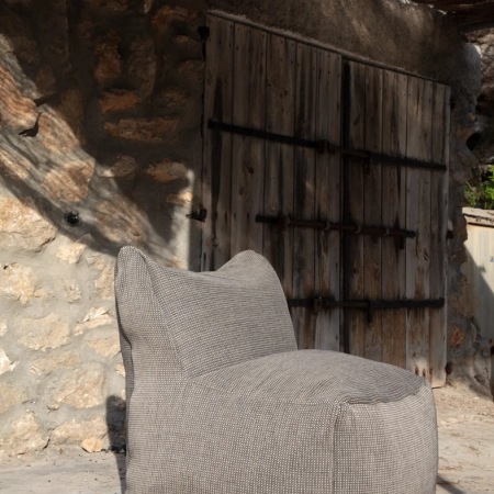 Zahvaljujući svojoj čvrstoj strukturi od 100% tanko predenog UV-stabiliziranog polipropilena, tkanina je otporna i na sunce i na kišu. Struktura tkanine je vrlo gusta i čvrsta. Ova vreća za sjedenje s visokokvalitetnim EPS punjenjem je ergonomska i udobna jer se prilagođava pokretima vašeg tijela.