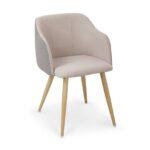 Udobna stolica s rukonaslonom presvučena sivom i beige tkaninom na metalnim nogama u boji drveta koja će se prekrasno uklopiti u Vaš dom.