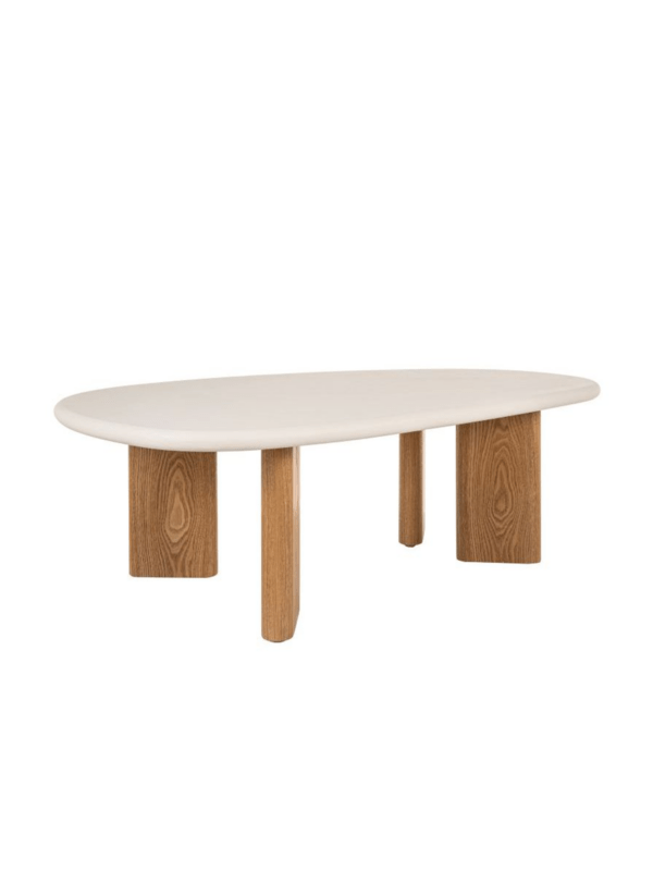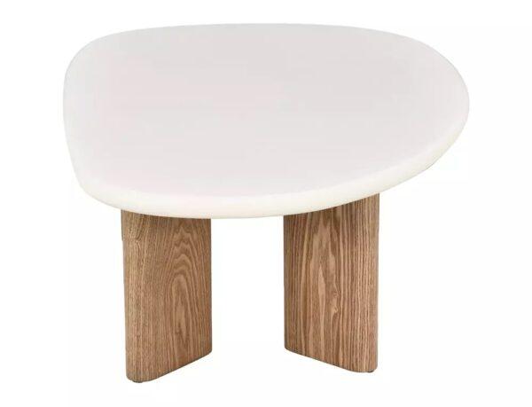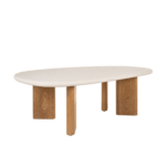 Elegantni stolić modernog dizajna izrađen je od MDF-a s površinom od mikrocementa koja daje sofisticiran i minimalistički izgled. Stabilna konstrukcija od MDF-a obložena prirodnim furnirom osigurava čvrstoću i dugotrajnost. Kombinacija boje écru i dekora hrasta unosi toplinu i eleganciju u svaki suvremeni interijer.