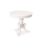 Stolić promjera 60 cm antiknoga izgleda od laminiranoga MDF-a u bijeloj boji.