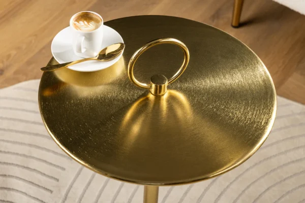 Dodajte dašak luksuza svom životnom prostoru uz stolić Aureo čija će zlatna ploča zasigurno privući poglede. Bilo da želite poslužiti šalicu čaja ili izložiti omiljeni dekor, ovaj pomoćni stolić oduševit će svojom jedinstvenom kombinacijom glamura i praktičnosti.