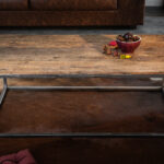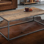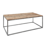 Ručno rađeni stolić izrađen je od recikliranog drva Shoree. Prirodne je boje i industrijskog izgleda. Postolje je metalno i crne je boje.