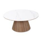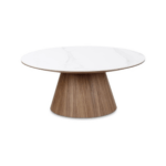 Stolić Clarice spaja prirodnu toplinu s profinjenom elegancijom. Bijela sinterirana kamena ploča stola dodaje završni sloj koji je izdržljiv i otporan na ogrebotine, idealan za svakodnevni život.