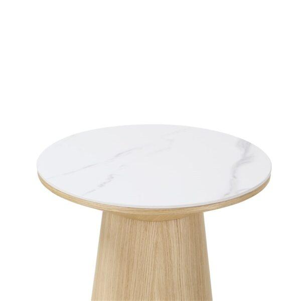 Stolić Clarice spaja prirodnu toplinu s profinjenom elegancijom. Bijela sinterirana kamena ploča stola dodaje završni sloj koji je izdržljiv i otporan na ogrebotine, idealan za svakodnevni život.