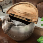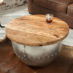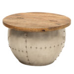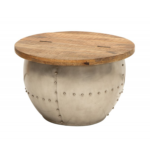 Ploča ovog zanimljivog stola izrađena je od drva manga dok je metalna baza zavarena zakovicama. Ploča stolića prirodne je boje. Ovaj stolić može poslužiti i kao spremnik za jastuke, deke i slično.