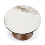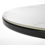 Elegantan stolić u kombinaciji tamnoga oraha i keramike u imitaciji mramora s decentom zlatnom trakom na spoju ploče s postoljem. Dolazi u dvije dimenzije.