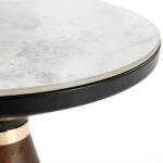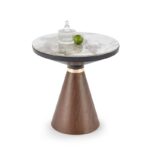 Elegantan stolić u kombinaciji tamnoga oraha i keramike u imitaciji mramora s decentom zlatnom trakom na spoju ploče s postoljem. Dolazi u dvije dimenzije.
