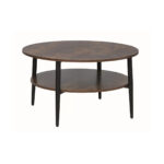 Stolić Gina A okruglog je oblika i promjera 80 cm. Izrađen je metalnog crnog postolja i laminirane ploče s efektom rustikalnog drva. Stolić je dobar izbor za sve manje prostore i odlično će se uklopiti u interijere uređene u industrijskom stilu.