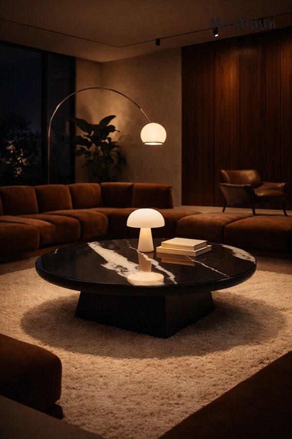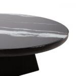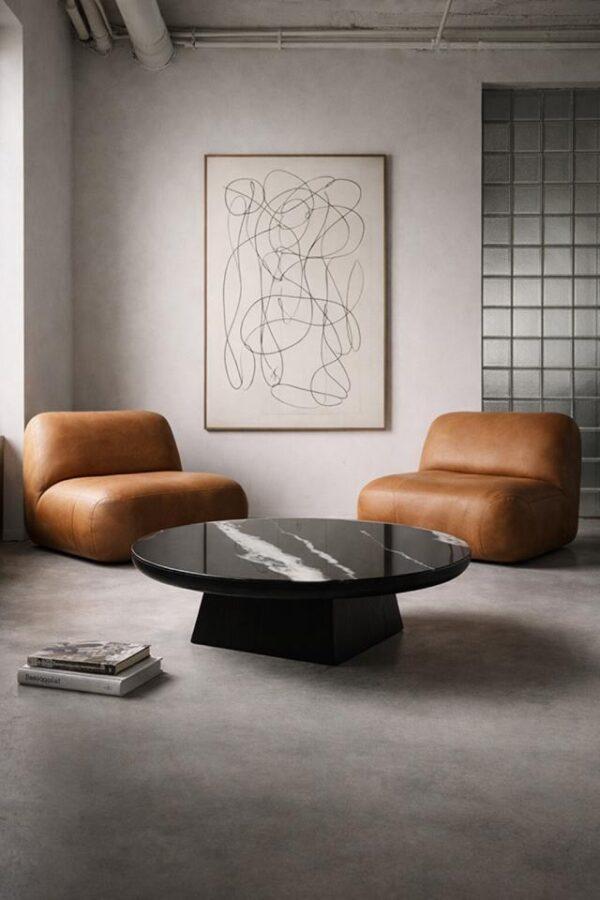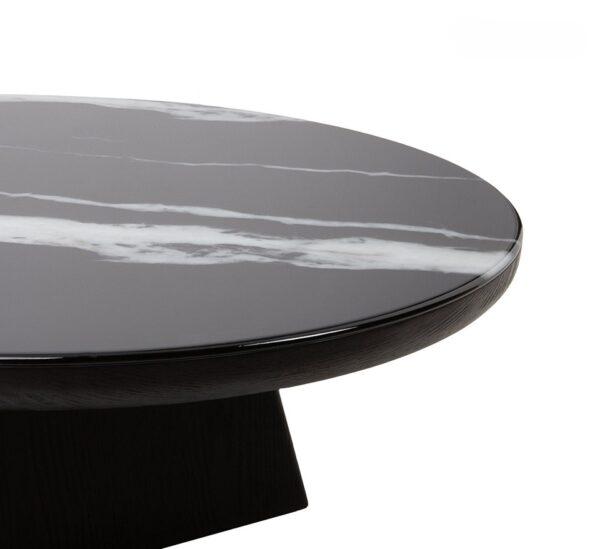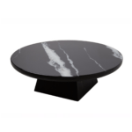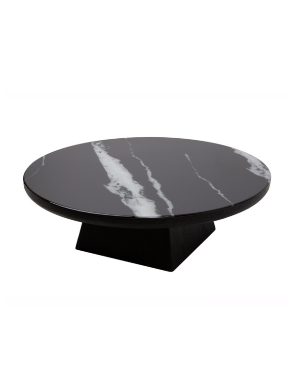 Stolić May moderno je rješenje s prepoznatljivim geometrijskim oblikom. Okrugla ploča od resina očarava suptilnim mramornim uzorkom, dajući ploči dubinu i eleganciju. Stabilna drvena baza sa suženim oblikom naglašava oblik i pruža čvrstu potporu – kontrast između glatke ploče stola i izražajne baze stvara kohezivnu, profinjenu cjelinu.