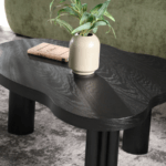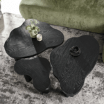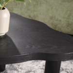 Crni stolić za kavu Noble ističe se neobičnim oblikom ploče koja privlači pažnju i daje aranžmanu individualni karakter. Svojim oblikom savršeno se uklapa u moderne minimalističke prostore, ali svoje će mjesto pronaći i u industrijskijim interijerima. Ovo je idealno za ljude koji cijene originalna rješenja i suptilne naglaske u dizajnu interijera.