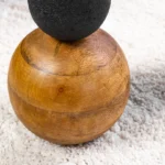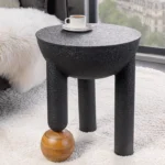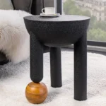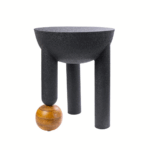 Unesite originalnost u svoj interijer uz stolić Shoshana! Njegov skulpturalni dizajn, inspiriran 1970-ima, zavodi svojim konturama i skladnim kontrastom između jarko zlatne i profinjenog crnog akcenta. Izrađen od čelika s crnim praškastim premazom strukturiranog efekta, ovaj stol fascinira svojim dizajnom i bezvremenskim vizualnim sjajem, a donja potporna kugla izrađena je od drva manga. Svestran i robustan, ovaj stolić dizajniran je kombinirajući estetiku i izdržljivost. Njegova zlatna završna obrada, suptilno patinirana nepravilnostima, svjedoči o delikatnoj izradi, čineći svaki komad jedinstvenim.