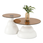 Stolić za kavu Welles savršeno odgovara modernim interijerima u kojima su jednostavnost oblika i elegantni materijali, poput stakla i bijele boje, ključni. Također će odlično funkcionirati u minimalističkim aranžmanima, dodajući suptilan, ali učinkovit naglasak.