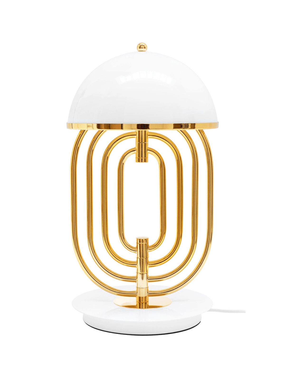 Stolna svjetiljka Bottega je zadivljujuća stolna lampa koja odiše modernim glamurom. Izrađena od zlatnog čelika, ovu svjetiljku odlikuje elegantan dizajn s bijelim sjenilom koje skriva izvor svjetlosti ispod. Savršena za korištenje kao noćno svjetlo ili stilski ukras interijera, Bottega je funkcionalna i estetski ugodna.