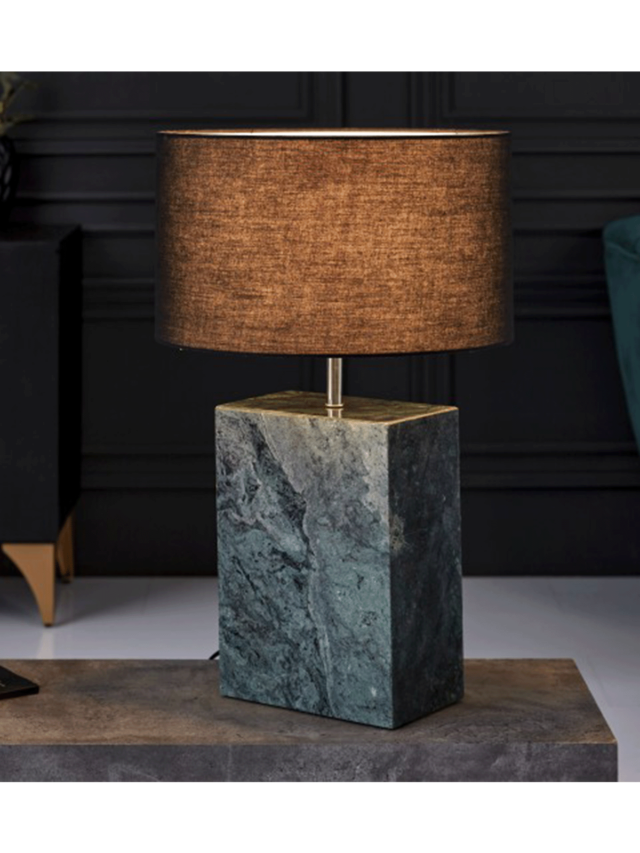 Stolna svjetiljka Jamal stoji na crnom plastičnom postolju dok je sjenilo papirnato sjenilo bež boje. Svojim jednostavnim oblikom donosi profinjenu atmosferu u prostor, istovremeno pružajući udobno osvjetljenje.