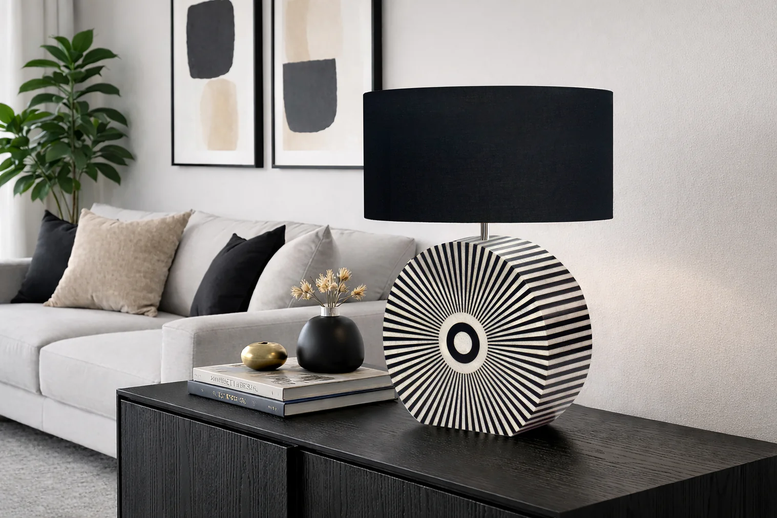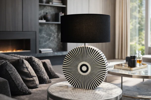 Umjetnički intarzijski rad daje stolnoj svjetiljki Lazio jedinstven šarm, čineći je ključnim dekorativnim elementom u prostoru.