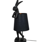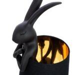 Stolna svjetiljka Rabbit lampa je jedinstvenog dizajna u obliku sramežljivog zečića koji se prekriva crnim lanenim sjenilom. Figurica je izrađena s velikom pažnjom za detalje od poliresina premazanog crnim prahom. Ovo dekorativno, avangardno rasvjetno tijelo koje privlači pažnju savršeno će se uklopiti u moderan interijer.