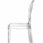 Moderna prozirna stolica Kvinne izrađena je od plastike sa sjajnom završnom obradom, što je čini lakom za čišćenje. Dekorativni završni slojevi na podnožju i gornjem dijelu sjedala daju joj jedinstven izgled. Stolica se može slagati.