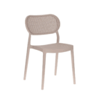 Ugostiteljska stolica Maddaloni kombinira UV otporni polipropilen s besprijekornim minimalističkim dizajnom. S udobnim, blago zakrivljenim naslonom, ova stolica je savršena za vrt ili terasu. Naslon i sjedalo izrađeni su od materijala koji podsjeća na bečki pleter. Maksimalna nosivost je 120 kg, montaža nije potrebna.