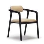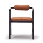 Ugostiteljska stolica Nova kombinira robusnost konstrukcije od punog drva s udobnošću kožne podstave, čineći je bezvremenskim dodatkom svakom blagovaonskom prostoru.