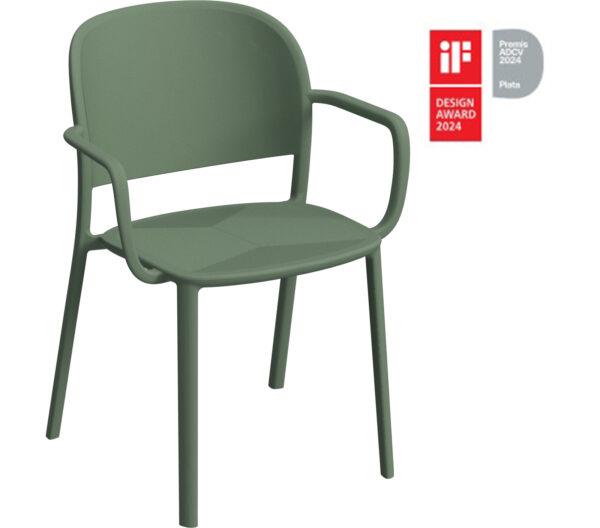 Eleganta i udobna ugostiteljska stolica koja dolazi u nekoliko nijansi. Dizajnirao ju je Yonoh Creative Studio i time osvojio brojne prestižne nagrade, uključujući iF Design 2024. Zbog jednostavnog održavanja i skladištenja, UV zaštite koja štiti od sunčevih zraka te materijala koji je otporan na razne vremenske uvjete, vrlo je pogodna za ugostiteljske objekte, moderne terase, ali i blagovaonice.