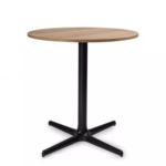 Ovaj okrugli stol je za unutarnju upotrebu. Postolje stola izrađeno je od obojanog aluminija dok je ploča stola napravljena od melamina – dvostrukog furnira s efektom drveta.
