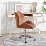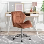 Fotelja elegantnog dizajna u kombinaciji baršunaste tkanine iznimno mekane na dodir i čelika s regulacijom visine i mogućnošću rotiranja.