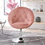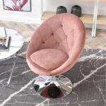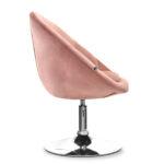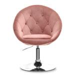 Fotelja elegantnog dizajna u kombinaciji čelika i baršuna s regulacijom visine i mogućnošću rotiranja.