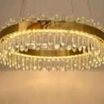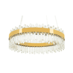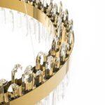 Visilica Amira je ekskluzivna i elegantna svjetiljka koja će ukrasiti moderne interijere u glamur stilu. Čelični rub u zlatnoj boji s dodatkom sjajnih kristala stvara nevjerojatan vizualni efekt koji privlači poglede. Zlatna boja nježno svijetli kroz kristale i raspršuje svjetlost.