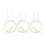 Visilica Bird Line komponira tri figure ptica obješene na zlatni diskove sa crnim kablom na koji su pričvršćeni. Ova svjetiljka izrađena kombinacijom akrila i metala omogućuje vam stvaranje jedinstvenih, razigranih aranžmana.