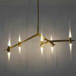 Visilica Candelabr ima zanimljiv dizajn koji podsjeća na grane drveta. Konstrukciju sačinjavaju zakrivljeni aluminijski krakovi u zlatnoj boji sa staklenim, satenskim sjenilima.