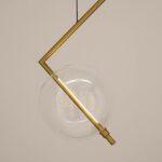 Visilica Echo sastoji se od prozirnog kuglastog abažura izrađenog od stakla koji je postavljen na metalnu strukturu u saten zlatnoj boji. Ono što ovu svjetiljku čini posebnom je njen geometrijski, jednostavan dizajn. U abažuru se mogu pojaviti mjehurići zraka koji su prirodan efekt nastao ručnom obradom stakla.