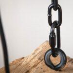 Unikatna visilica Ezio 70 izrađena je od masivnog recikliranog drva. Metalni lanci mogu se podešavati po visini, dok se drveno postolje može prilagoditi različitim dimenzijama prostora.