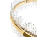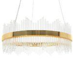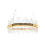 Visilica Florens iznimno je elegantno rasvjetno tijelo čiji su glavni element kristalni abažuri. Metalni okvir po sredini lampe u zlatnoj boji postaje dodatni ukras svjetiljke. U abažuru se mogu pojaviti mjehurići zraka koji su prirodan efekt nastao ručnom obradom stakla.