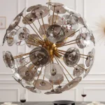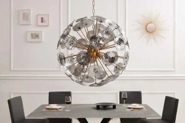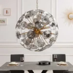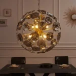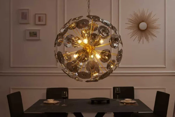 S upečatljivom kombinacijom prozirnih i zlatnih nijansi, viseća svjetiljka Galaxy bez napora nadopunjuje klasične i suvremene dekore. Skladna mješavina visokokvalitetnog stakla i čelika ne samo da osigurava trajnost, već i zrači osjećajem modernog luksuza.