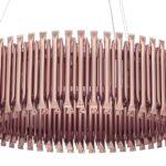 Visilica Galliano savršeno će pristajati u blagovaonici, dnevnom boravku te restoranskim i hotelskim prostorima. Elegantni abažur sastoji se od zatvorenih cijevi čiji je oblik inspiriran orguljama. Ovo rješenje dodatno naglašava sofisticiranost u kombinaciji s pažnjom izrade svjetiljke. Cjelina se montira na stropnu ploču u bakrenoj boji svjetiljke i na čelične sajle.