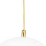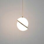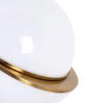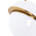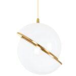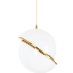 Visilica Globe izrađena je od kombinacije zlatnog metala i sferičnog abažura od sjajnog mliječnog akrila. Sjenilo izrađeno od dvije polukugle obrađene brušenim metalom skriva izvor svjetlosti i visi na zlatnom kablu u tekstilnoj pletenici. Ova svjetiljka savršen je odabir za ljubitelje neobičnog dizajna.