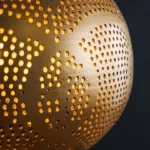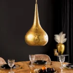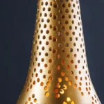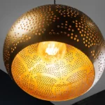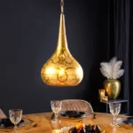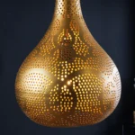 Visilica Irakli unijet će dašak orijentalnog štiha u vaš dom. Oblik kapljice i nježan uzorak probušenih rupa daju svjetiljci jedinstven izgled, dok zlatna željezna površina stvara topao i privlačan sjaj. Svaka lampa je ručno izrađena, što je čini zaista jedinstvenom i impresivnom zbog svoje visokokvalitetne izrade.