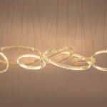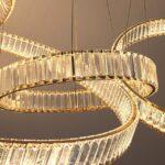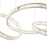 Visilica Liberty svjetiljka je koja će efektno ukrasiti klasične, moderne i glamurozne interijere. Osam krugova različitih veličina obješeni su jedan do drugog na tankim užadima, a zlatna boja nježno sjaji kroz kristale, stvarajući prekrasan dekorativni efekt.