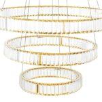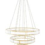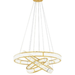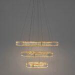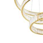 Visilica Liberty Triples je ekskluzivna svjetiljka koja će uspješno ukrasiti klasične, moderne i glamurozne interijere. Kristalno staklo montirano s obje strane ruba raspršuje svjetlosni tok na neobičan način, dok zlatna boja nježno sjaji kroz kristale stvarajući prekrasan dekorativni efekt. Krugovi raznih veličina obješeni na tanke sajle imaju mogućnost podešavanja visine što omogućuje kreiranje kreativnih konfiguracija prstena.