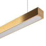 Visilica Linus je izrađena od čelika i aluminija u zlatu. Sjenilo lampe stvara ombre efekt. Topla LED dioda postavljena je cijelom dužinom, osiguravajući odgovarajuću rasvjetu. Jednostavno, a moderno rasvjetno tijelo bit će praktična rasvjeta za svaki aranžman.