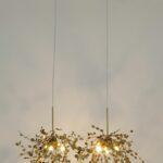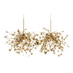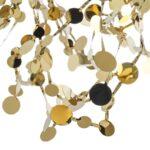 Visilica Monete je estetski dopadljiva lampa koja privlači pažnju i potiče kreativnost. Struktura lampe izrađena je od metala u sjajnoj zlatnoj boji. Dva abažura nalikuju šaci novčića, obješenih na prozirni kabel i pravokutnu stropnu ploču. Lampe iz kolekcije Monete bit će izvrstan dodatak iznad blagovaonskog stola ili ekstravagantan element dnevne sobe.