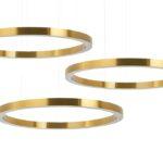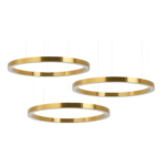 Visilica Ring I kombinacija je modernih elegantnih svjetiljki Ring koje se mogu složiti u konfiguraciji po vašoj želji na jednoj stropnoj ruži. Prstenaste lampe izrađene su od zlatnog nehrđajućeg čelika i akrilnih pokrova izvora svjetla. Kaskadno obješen na metalne sajle, Ring će pružiti optimalno osvjetljenje i izvanredan vizualni dojam.