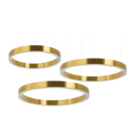 Visilica Ring IV kombinacija je modernih elegantnih svjetiljki Ring koje se mogu složiti u konfiguraciji po vašoj želji na jednoj stropnoj ruži. Prstenaste lampe izrađene su od zlatnog nehrđajućeg čelika i akrilnih pokrova izvora svjetla. Kaskadno obješen na metalne sajle, Ring će pružiti optimalno osvjetljenje i izvanredan vizualni dojam.